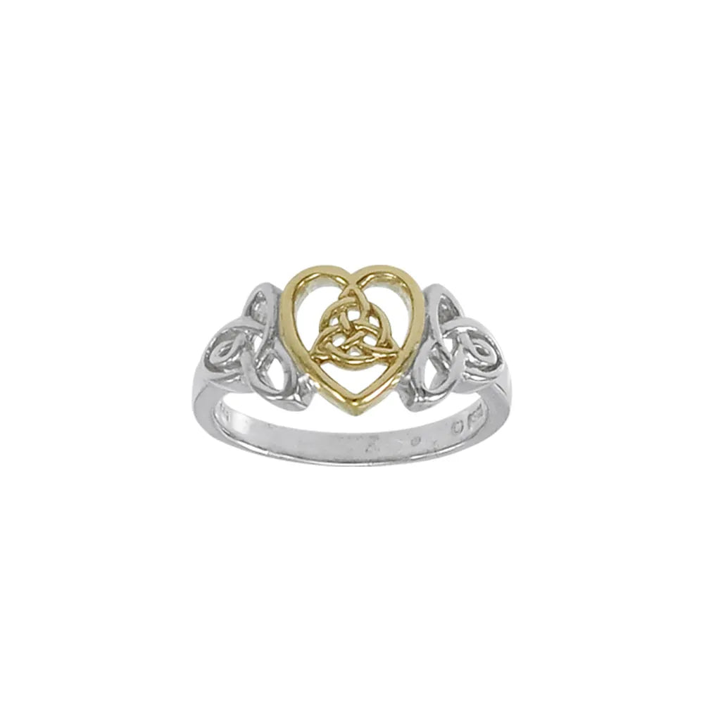 Celtic Knotwork Trinity Heart Sterling Silver with 14K Gold Accent Ring MRI873
