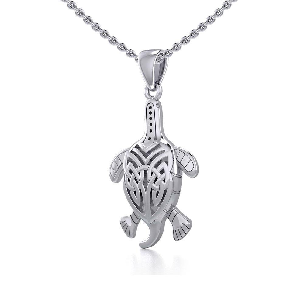 Celtic Sea Turtle Sterling Silver Pendant TPD5689