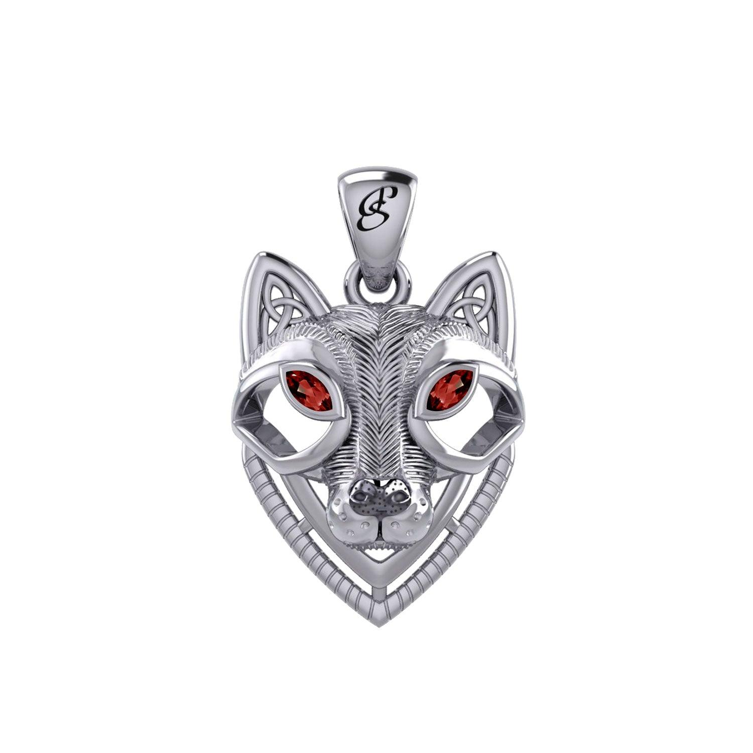 Celtic Wolf Spirit with Meaningful Gemstone Sterling Silver Pendant – Mystical Symbol of Spiritual Connection and Strength by Peter Stone Jewelry TPD6213