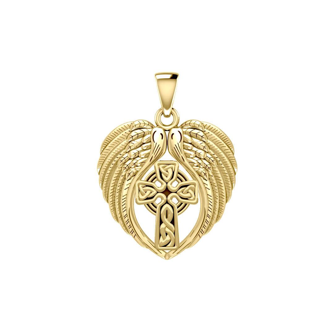 Feel the Tranquil in Angels Wings Solid Gold Pendant with Celtic Cross GPD5480