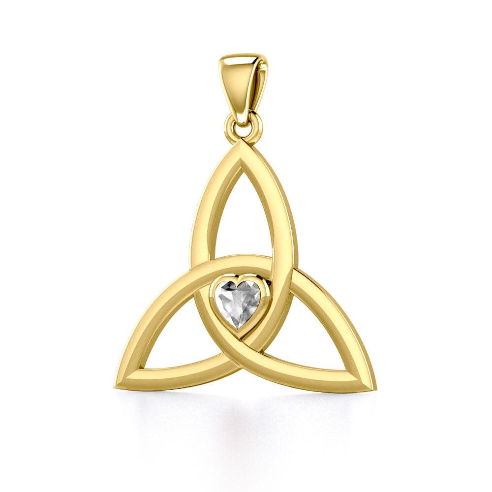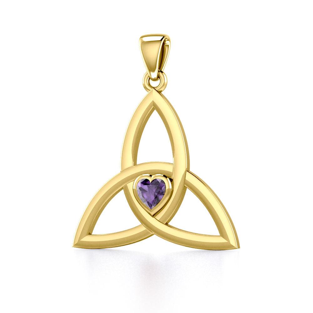 The Celtic Trinity Knot 14 Karat Yellow Gold Pendant with Heart Gemstone GPD5342